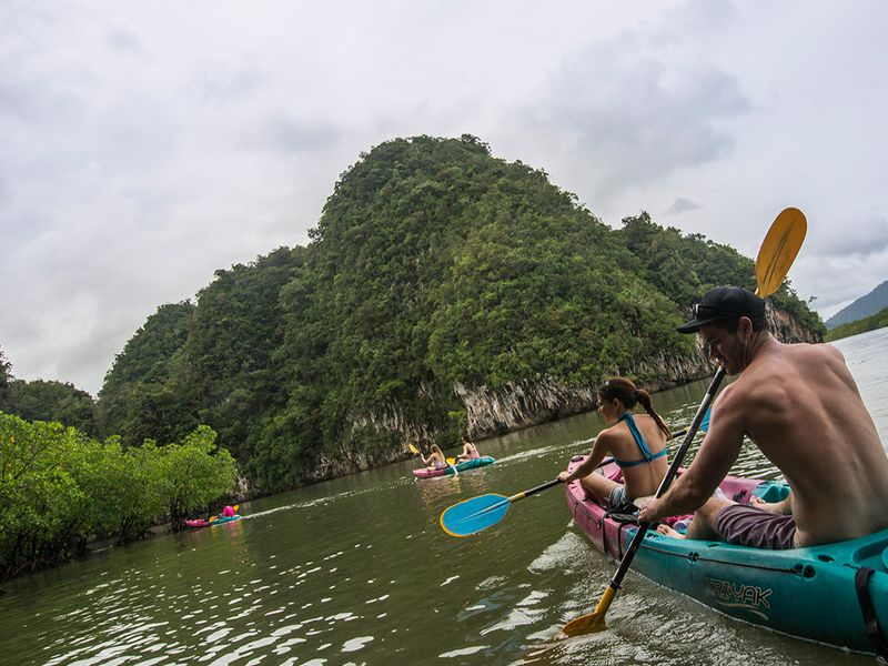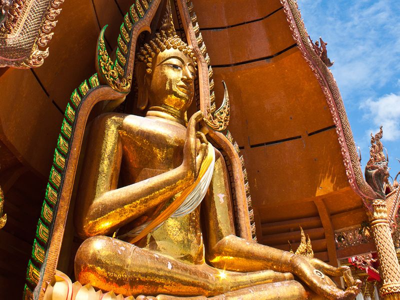 Discuss daily life with a resident monk, Explore the temples and palaces of Ayutthaya, Cruise Bangkok’s delightfully chaotic canals, Explore Hong Island on a traditional Longtail Boat, Coast down Krabi River aboard a Longtail boat before hopping in a tricycle tuk-tuk