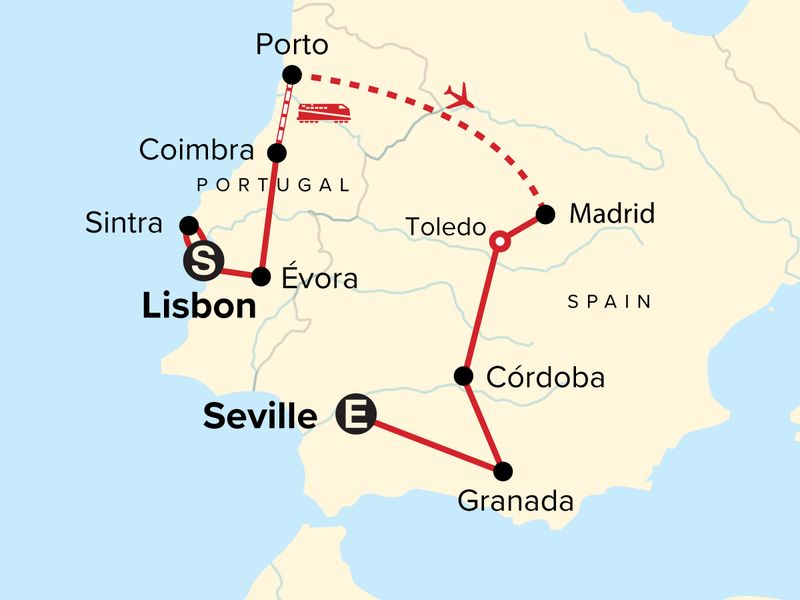 Discover Portugal’s architectural gems like the manors of Sintra and the Roman temples of Évora, Enjoy a mesmerizing Fado music performance in Lisbon, Take in a traditional flamenco show in Seville, Venture into Portugal’s countryside to learn about the production of cork and olive harvesting, Marvel at the splendid Moorish architecture of the UNESCO World Heritage-listed Alhambra in Granada