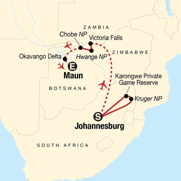 Your Discover Moment: Victoria Falls. Arrival transfer. Panorama Route scenic drive with entrances. Private nature reserve wildlife safari drives in open vehicles. Open-vehicle wildlife safari drives in Kruger, Hwange and Chobe National Parks. Tour of Victoria Falls. Chobe boat safari. Wildlife excursions by boat and on foot in the Okavango Delta. All transport between destinations and to/from included activities