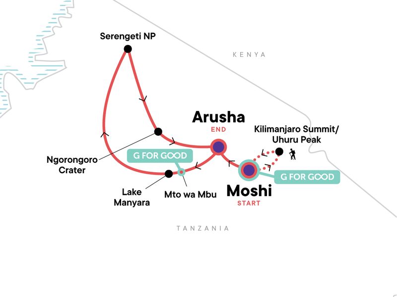 Please note that this tour is a combination of two G Adventures tours. This trip combines our Kiliminjaro Trek (DTM8), Tanzania Wildlife Experience (DTWE).