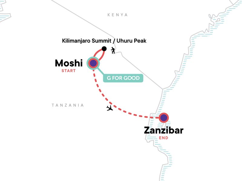 Your Welcome Moment: Welcome Moment - Meet Your CEO and Group. 5-day guided group trek up Mt Kilimanjaro's Marangu Route with local guides, cooks and porters. All permits and fees. Scenic flight from Kilimanjaro to Zanzibar. Orientation walk in Stone Town. Spice plantation guided tour. All transport between destinations and to/from included activities.