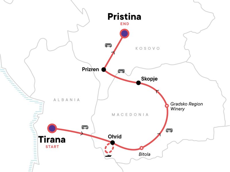 Venture off the beaten path on this eight-day European adventure through Albania, North Macedonia, and Kosovo — three hidden gems packed with history, flavour, and untold stories. Wander through centuries-old architecture that weaves a tale of resilience and progress, indulge in local delicacies that will surprise and delight, and sip your way through ancient wine traditions that have stood the test of time. Along the way, connect with locals, bond with fellow travellers, and experience a side of Europe most never see. This isn’t your typical Euro trip — it’s something bolder, richer, and completely unforgettable.