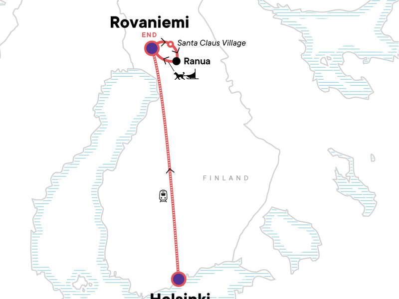Your Welcome Moment: Welcome Moment - Meet Your CEO and Group. CEO-led orientation walk in Helsinki. Huereka Science Centre visit. Santa Claus Village visit. Husky experience at their kennel. Northern Reindeer experience. Midnight sun walk and picnic. Free time in Ranua. All transport between destinations and to/from included activities.