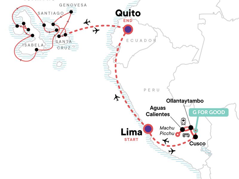 Combine the awe-inspiring wonders of the Incas with the extraordinary wildlife of the Galápagos on this unforgettable 17-day adventure through Peru and Ecuador. Glide through the Sacred Valley by rail en route to the legendary Machu Picchu, savour the culinary magic of Lima, and set sail aboard the Yolita to explore the hidden gems of the Galápagos. From the untouched beauty of Genovesa in the north to the volcanic landscapes of Isabela in the west, every stop offers something extraordinary. Hike to the crater rim of the Sierra Negra Volcano, relax on pristine white-sand beaches, and snorkel alongside playful sea lions. Experience the best of both worlds in two of South America’s most enchanting countries.