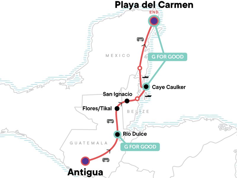 Your Discover Moment: Playa del Carmen. Scenic boat ride to Livingston. Tikal guided tour. Free time in San Ignacio, Caye Caulker, and Playa del Carmen. All transport between destinations and to/from included activities.