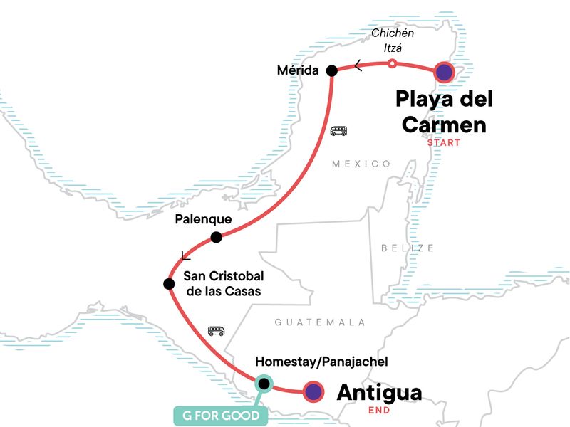 Your Discover Moment: San Cristóbal de Las Casas. Chichén Itzá guided tour. Mérida orientation walk. Palenque guided tour. Roberto Barrios waterfall visit. San Cristóbal de las Casas orientation walk. Antigua orientation walk. Free time in Mérida and San Cristóbal de las Casas. All transport between destinations and to/from included activities.