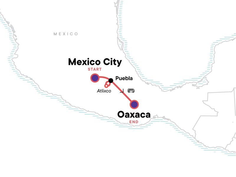 Your Discover Moment: Oaxaca. Free time in Mexico City. Puebla Orientation Walk. Free time in Puebla. Day tour of Atlixco. Oaxaca Orientation Walk. Visit to a local Oaxaca Cemetery to view Day of Dead Traditions. Oaxaca Market Visit. All transport between destinations and to/from included activities