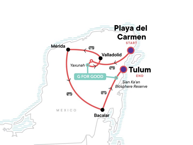 Me Day: Bacalar Me Day, Bacalar. Complimentary arrival transfer. Free time in Merida and Tulum. Tulum Ruins guided tour & free time to go down to the beach. Sian Ka'an tour. All transport between destinations and to/from included activities