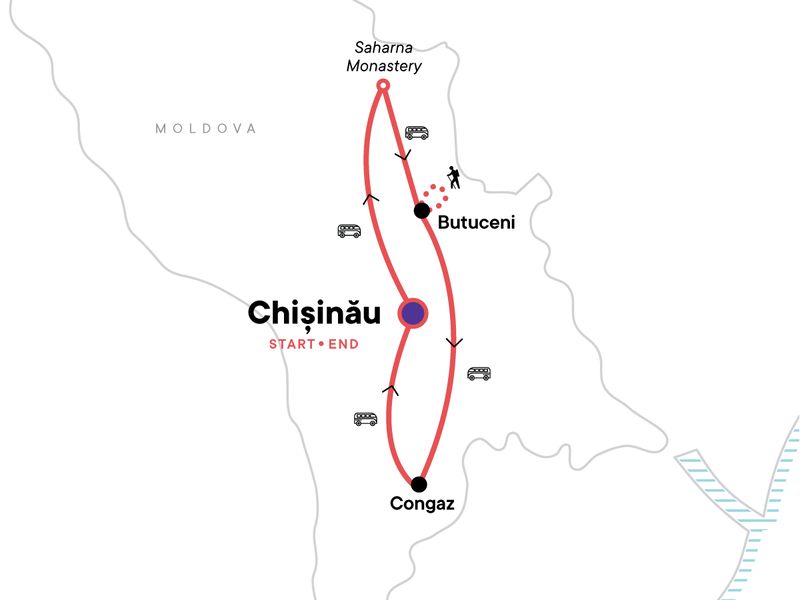 Your Local Living Moment: Gagauz Sofrası Meal and Experience, Congaz. Chisinau orientation walk. Guided walking tour of Chisinau. Cricova Winery tour and tasting. Saharna Monastery visit. 'Fromage - Made in Moldova' project visit and light lunch. Orheiul Vechi Hike. Trebujeni cooking class. Guided National Gagauz History and Ethnographic Museum visit with cultural presentation. Comrat winery tour and tasting. Gagauz Sofrasi cultural and culinary complex visit with dinner. All transport between destinations and to/from included activities