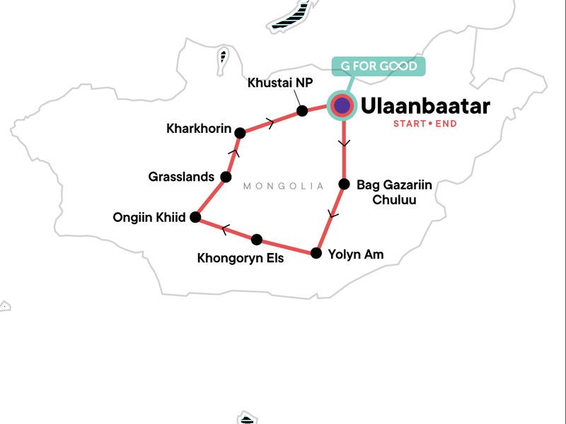 Your Welcome Moment: Welcome Moment - Meet Your CEO and Group. Nadaam Festival Tickets. Wrestling, archery, and horse racing events. No Limits Cafe. Closing Ceremony of Nadaam Festival. Genghis Khan Monument Visit. Gorkhi Terelj National Park Visit. Choir Monastery Visit. Yolyn Am National Park stay and nature Museum visit. Gobi Desert stay. Khongoryn Els Sand Dunes and Flaming Cliffs Visit. Ongiin Khiid Monastery entrance. Mongolian Grasslands nomad camp stay. Karakorum monument entrance. Khustai National Park entrance. All transport between destinations and to/from included activities.