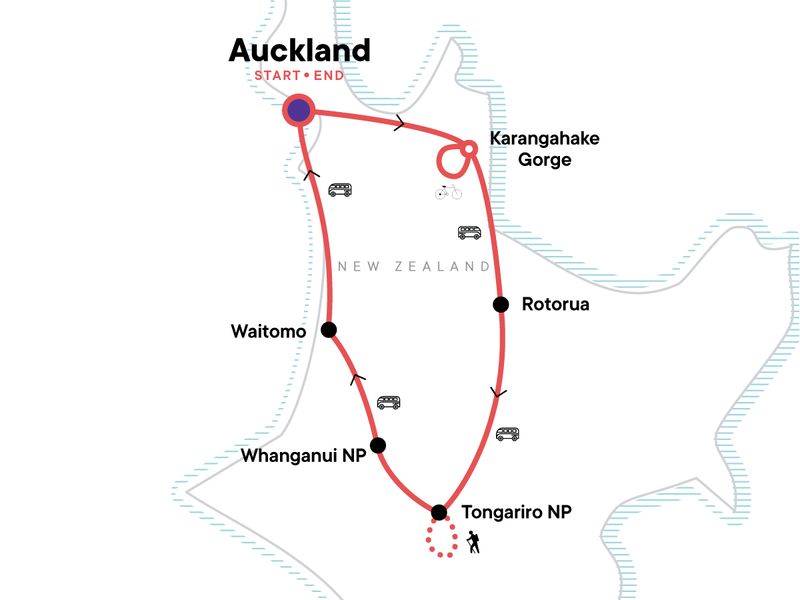 Your Welcome Moment: Welcome Moment - Meet Your CEO and Group. All Blacks Experience. Cycle through Karangahake Gorge. Traditional hangi dinner. Tongariro Alpine Crossing hiking excursion (weather dependent). Jet boat along Whanganui River. Free time in Rotorua and Waitomo. All transport between destinations and to/from included activities.