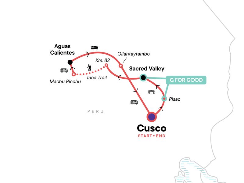 Please note, in most cases, the entire group will not be hiking the Inca Trail together. Members of the group may choose to hike the Lares Trek or spend additional time in Cusco and the Sacred Valley instead of hiking. If you have chosen the Lares Trek or Cusco Stay you may be paired with members of other G Adventures groups for the trek, transportation, and activities included.