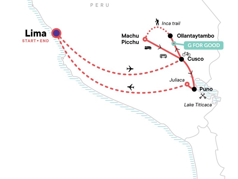 Please note, in most cases, the entire group will not be hiking the Inca Trail together. Members of the group may choose to hike the Lares Trek or spend additional time in Cusco and the Sacred Valley instead of hiking. If you have chosen the Lares Trek or Cusco Stay you may be paired with members of other G Adventures groups for the trek, transportation, and activities included.