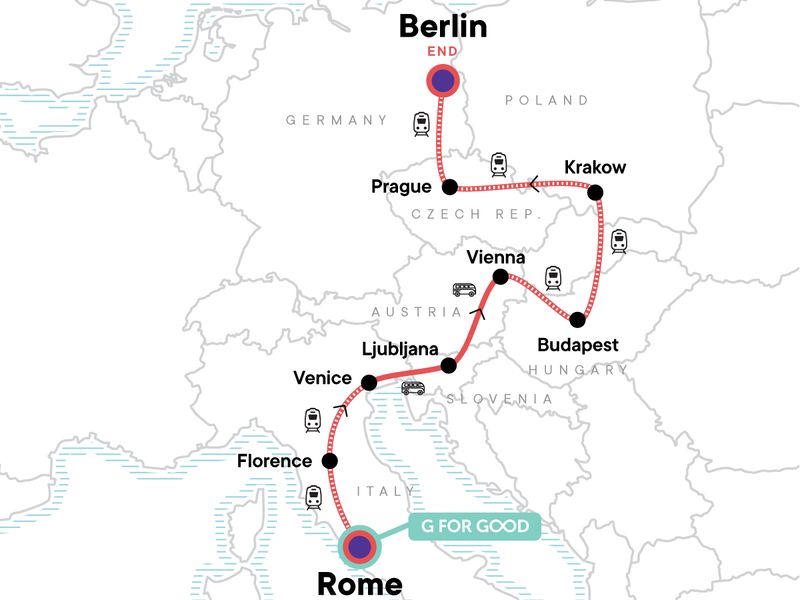 Your Big Night Out Moment: Prague. Visit to genuine Pilsner beer hall (Prague). Orientation walks in Venice, Vienna, Budapest, Kraków, Prague, and Berlin. All transport between destinations and to/from included activities.