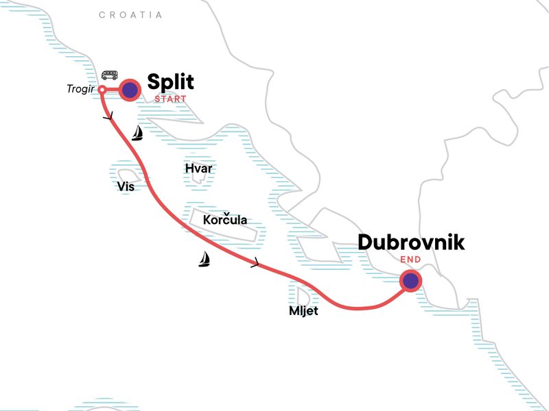 Connect with history at Diocletian's Palace in Split, Discover secluded islands and deserted beaches, Explore Korčula — the birthplace of Marco Polo, Wander the forested paradise of Mljet National Park, Sail into the ancient port of Dubrovnik — "the Pearl of the Adriatic"