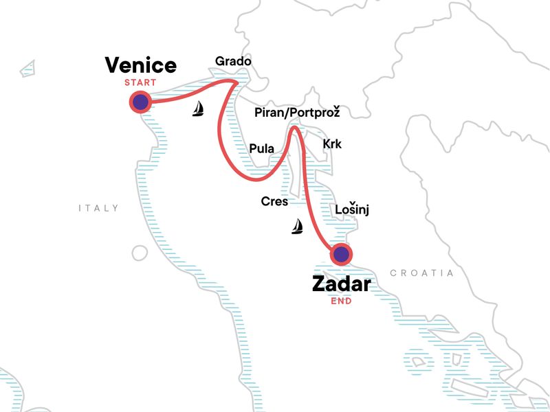 Embark from Venice as we hug the Adriatic coastline all the way to Zadar, Croatia. Flexible itineraries give your experienced Skippers the opportunity to showcase all the hidden gems you’re looking for. We follow the desires of the group and tailor the sailing experience to provide each group a quality journey while on board. As we begin our epic seafaring voyage through the gorgeous Adriatic Sea, keep an eye out for the various ancient villages, towns and ruins that will make up the first part of our trip. Our first stop is Izola, where we explore this magical region in Slovenia, and then continue on to Croatia.