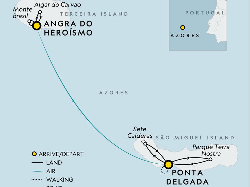 Embark on an unforgettable expedition to explore the rugged Azores archipelago, a land shaped by fire and sea. Discover Terceira's volcanic depths, witness unique marine life with a conservation biologist, and relax in São Miguel's geothermal hot springs. Experience the Azores as never before, connecting its history, culture, land and sea, guided by local expertise and profound geographical contrasts.