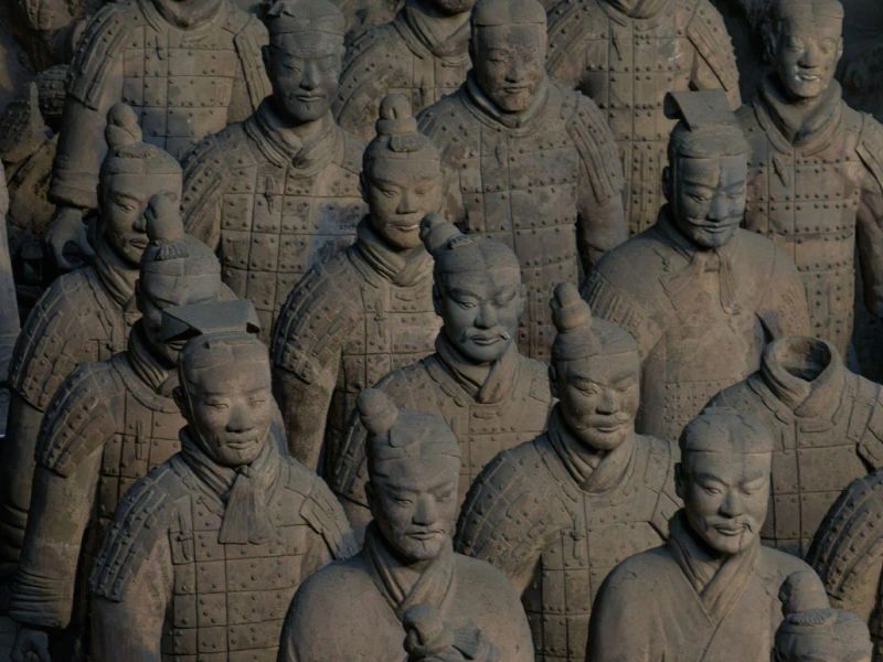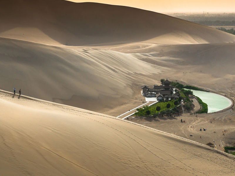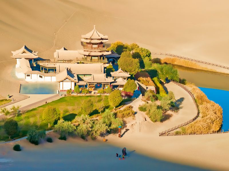 Savor an exclusive Peking Duck dinner atop the Great Wall as the sun sets over the peaks, Go behind the scenes in Xi’an to see rare artifacts and unearthed antiquities, Observe the famed statues, learning about the army’s lost colors and preservation, Gain entry to the Buddhist caves to view unparalleled Silk Road murals and statues, Watch the dunes of Mingsha Mountain turn gold at sunset from the Crescent Spring oasis.