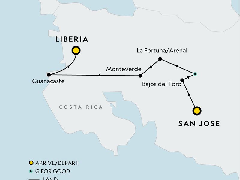 Signature Moment: Monteverde Institute Visit, Monteverde. Arrival transfer. Naturalist Guided Walking Tour in Bajos del Toro. Arenal Volcano Lecture. Arenal Walk and Guided Tour. Private Canopy Tour in Monteverde. Naturalist Guided Tour in Santa Elena Reserve. Visit to Las Pailas Geothermal Project I & II. Santa Maria Wind Project. Picnic Lunch at Rio Negro Waterfalls. Tamarindo Estuary Excursion. Free time in Bajos del Toro, La Fortuna, Monteverde, and Guanacaste. Departure transfer. Engaging Discussions with the National Geographic Expedition Expert Throughout. All transport between destinations and to/from included activities.