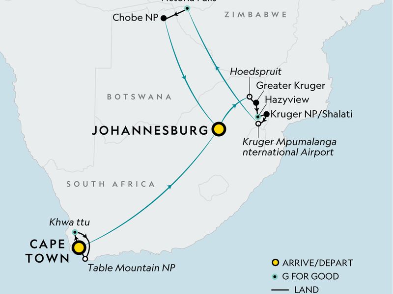 Please note that this trip is a combination of multiple G Adventures tours (Cape Town, Kruger). As such, the staff and/or particular vehicles operating your tour may change between tour segments. You may also expect some group members to join or leave the tour, between tour segments.