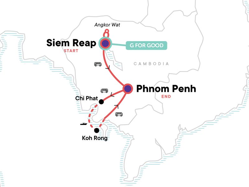 Dreaming of the adventure of a lifetime through the lesser-travelled gem of Southeast Asia — Cambodia — but not keen on going solo? We've got you covered. Explore the awe-inspiring Angkor Wat and Angkor Thom with your new travel crew. Trek through the lush jungles of the Cardamom Mountains and dive into the turquoise waters of Koh Rong, all while making unforgettable connections with your fellow Solo-ish travel mates.