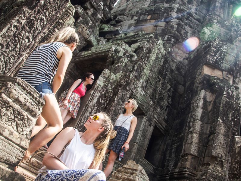 Explore the legendary temples of Angkor Wat and Angkor Thom with your Solo-ish travel crew, Take a sunrise riverboat ride through the jungles of the Cardamom Mountains in search of wildlife, Swim in turquoise waters and unwind on the white sands of Koh Rong Island