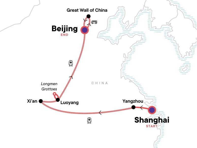 Me Day: Beijing Me Day, Beijing. Complimentary Arrival Transfer. Yangzhou City Tour, Yangzhou. Terracotta Warriors Visit. Muslim Quarter Visit. Luoyi Ancient Town walking tour. Visit to Longmen Grottoes. Dumpling Making. Trek the Great Wall. Visit Tiananmen Square and the Forbidden City. Transport to and from included activities.