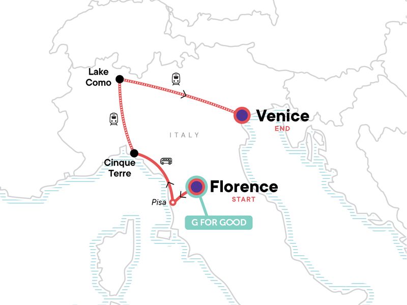 Indulge in "la dolce vita" on this nine-day immersion into northern Italy, from Florence to Venice. Get to know your fellow travellers at a pasta-making class in Florence, then dive deeper into the city with a walking tour led by a local migrant guide. On your way to the stunning Cinque Terre, snap a pic of the iconic Leaning Tower of Pisa. Explore Cinque Terre’s jaw-dropping coastal paths, then enjoy a boat ride on Lake Como, taking in the hilltop views from Brunate. Finally, soak up the magic of Venice. Italy's rich history, dreamy landscapes, and irresistible cuisine await.