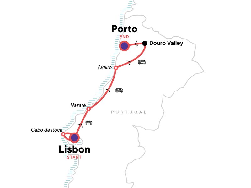 Taste delicious Portuguese cuisine on a walking food tour of Lisbon, Hike along continental Europe's westernmost point at Cabo da Roca, Walk along vineyards in the picturesque Douro Valley, Take a boat tour in Porto and sample local wines