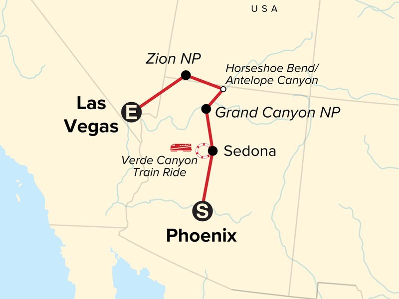 Your Family Journeys Moment: Antelope Canyon Kayaking Adventure, Page. Arrival transfer. All national park fees. Zion National Park visit and guided hike. Antelope Canyon guided kayak visit. Horseshoe Bend hike. Grand Canyon National Park visit. Verde Canyon train ride. Free time in Sedona, Zion, and the Grand Canyon. All tips included for activities and meals, except for Expedition Leaders and porterage. All transport between destinations and to/from included activities.