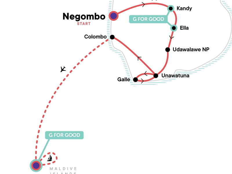 This 14-day combo trip brings together the best of Sri Lanka's cultural highlights and the once-in-a-lifetime opportunity to sail the islands of the Maldives aboard a dhoni boat. Experience a safari in Udawalawe National Park, discover cultural treasures of Negombo and Kandy, and then spend an entire week cruising from one tiny and perfect atoll island to another, snorkelling in crystal-clear waters and stretching out on blazing white-sand beaches. From culture to paradise, this tour's got it all.