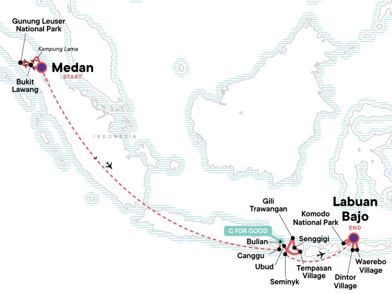 Your tropical jungle adventure continues today, starting with a camp breakfast. Taking a different path, we'll hike through more of Gunung Leuser National Park, keeping an eye out for more endangered animals and admiring the insanely awesome jungle surroundings. We’re hoping for more interactions with orangutans especially today! At our destination, we'll have a riverside lunch then hop into an inner tube and raft down the river, returning to Bukit Lawang on a traditional raft. How cool is that? Enjoy free time to chill or visit the Bat Cave. Then get ready! ‘Cause we’re going out! Tonight is your Big Night Out alongside the crew. We’ll hit up a jungly bar and have ourselves a night!