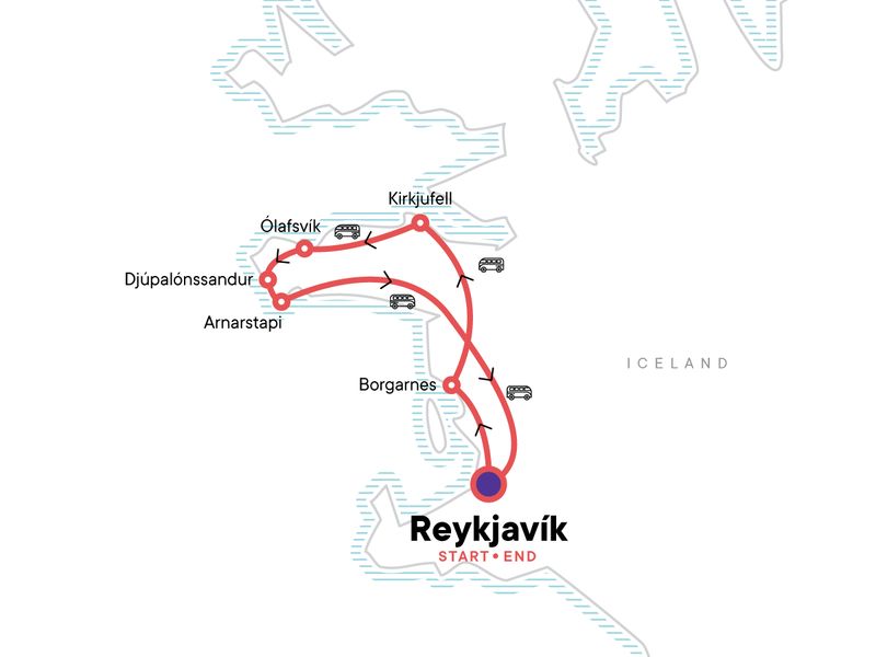 Whether you're adding on to an existing tour or hopping over for a long weekend, this three-day adventure is loaded with some of the best sites in Iceland. You'll start things off by joining your CEO for a city tour of Reykjavik. After that, enjoy a relaxing soak in the Sky Lagoon overlooking the country’s capital and spend a full day getting immersed in the sites and beauty of the Snæfellsnes peninsula. From 8,000-year-old lava tubes to charming fishing villages and the magnificent Mount Kirkjufell, this short trip is overflowing with big experiences.