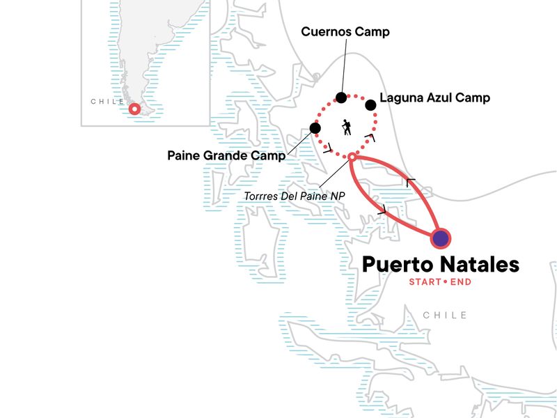 Your Welcome Moment: Welcome Moment - Meet Your CEO and Group. Torres del Paine National Park camping and trekking excursion along the the "W Route" (3 nts). All transport between destinations and to/from included activities.