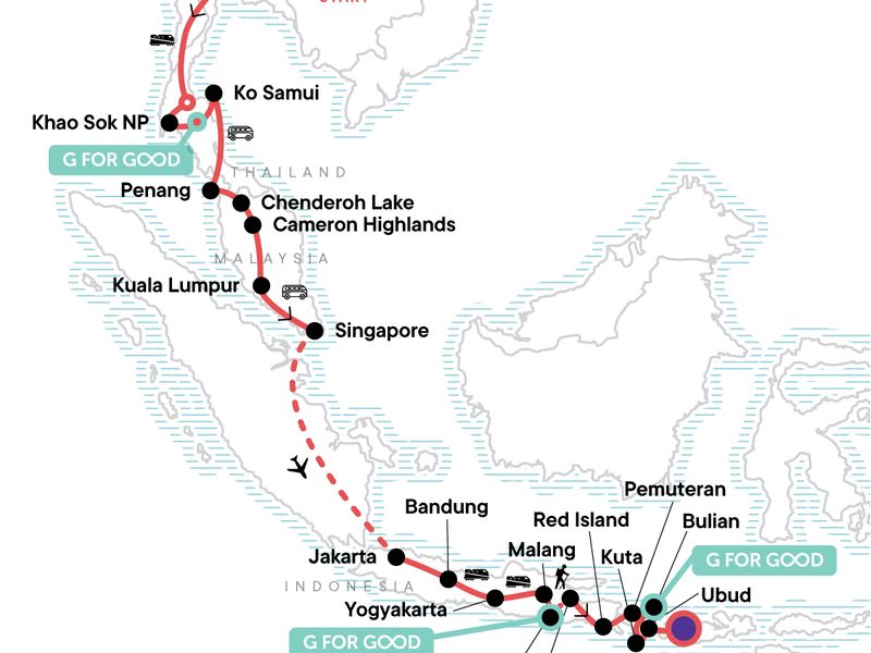 Now's the time to explore Thailand, Indonesia, and beyond on your terms with this tour that's affordable for young travellers. Bliss out on world-class Thai beaches, cool off in the Cameron Highlands of Malaysia, savour the street food and nightlife of Singapore, and breathe in some laid-back vibes among Bandung's waterfalls and hot springs, all before stretching your legs and hiking the Ancestor Trail to Mt Bromo. In this part of the world, you'll get to focus on your own adventure: pack your trip with everything you want and nothing you don't.