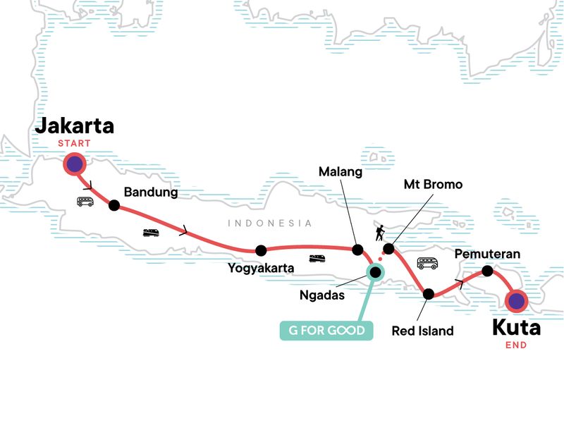 Your Big Night Out Moment: Kuta Dance Party, Kuta. Orientation walk in Bandung. Entrance to Bromo Tengger Semeru National Park. Mt Bromo crater walk. Sunrise hike to Mt Bromo viewpoint. All transport between destinations and to/from included activities.