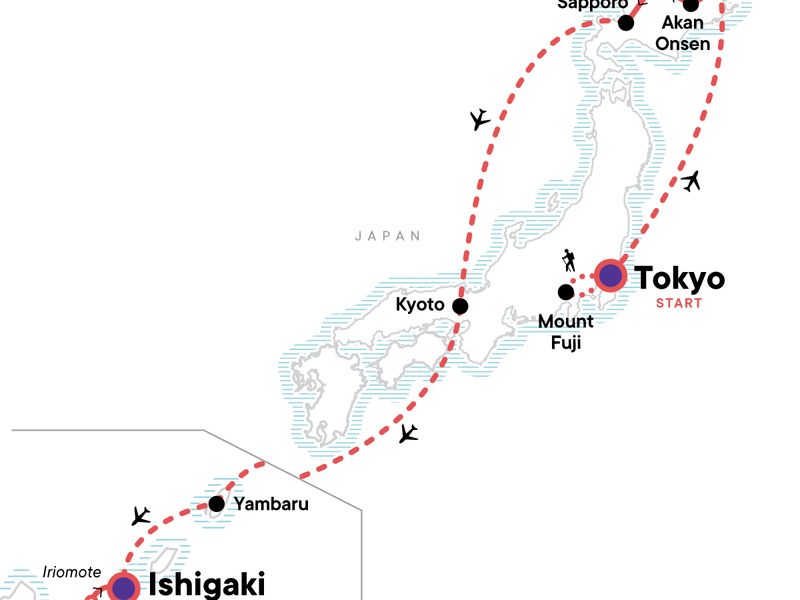 Welcome to Japan! Join your group early this morning for a welcome meeting in Tokyo then travel together to Mount Fuji! We'll take public transportation to arrive to the tallest mountain in Japan, the legendary Mount Fuji, to begin our epic adventure. Hike up the flower covered mountain and enjoy views of Suruga Bay, Sagami Bay in the Pacific Ocean and the top of the mountain on a clear day. Arrive at your hut where we'll stay this evening. Have dinner on the slopes of Mount Fuji before heading to bed for an extra early start tomorrow. End today at 2,700 m elevation. The Mount Fuji portion of this trip is particularly difficult, nonetheless amazing. If it seems a bit too difficult for your abilities, check out Active Northern Japan: Tokyo & Hokkaido (AJTH) or Active Japan: Hokkaido Highights & Okinawa Island Hopping (AJTN)