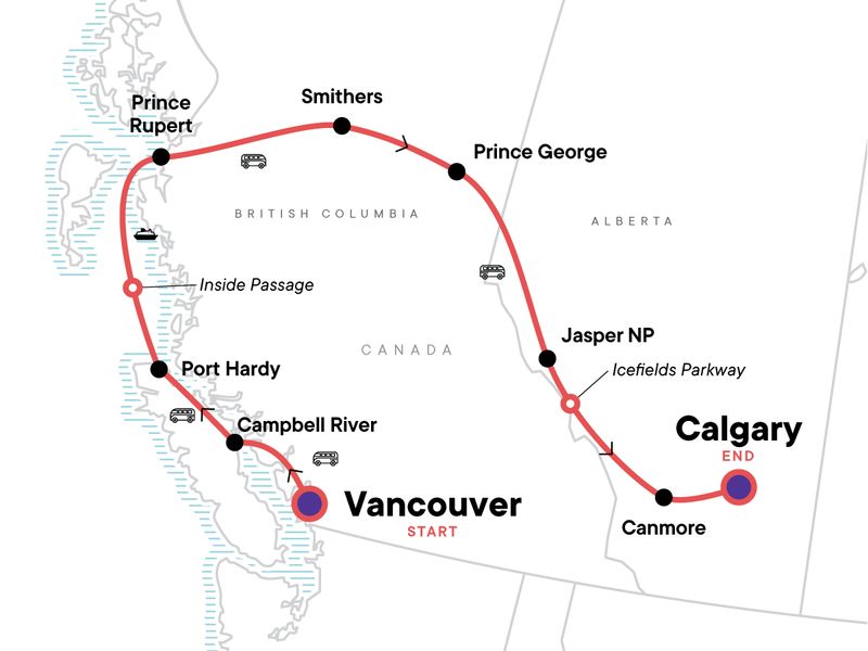 Discover the many landscapes, animals, and ways of life in the Canadian Rockies through an engaging 11-day tour. Venture to Vancouver Island and embark on the Inside Passage ferry, which takes you through glacial fjords to spot orcas and porpoises. Visit a collection of totem poles and immerse yourself in First Nation cultures. After all of these incredible encounters, you'll soon agree that the west coast is the best coast.