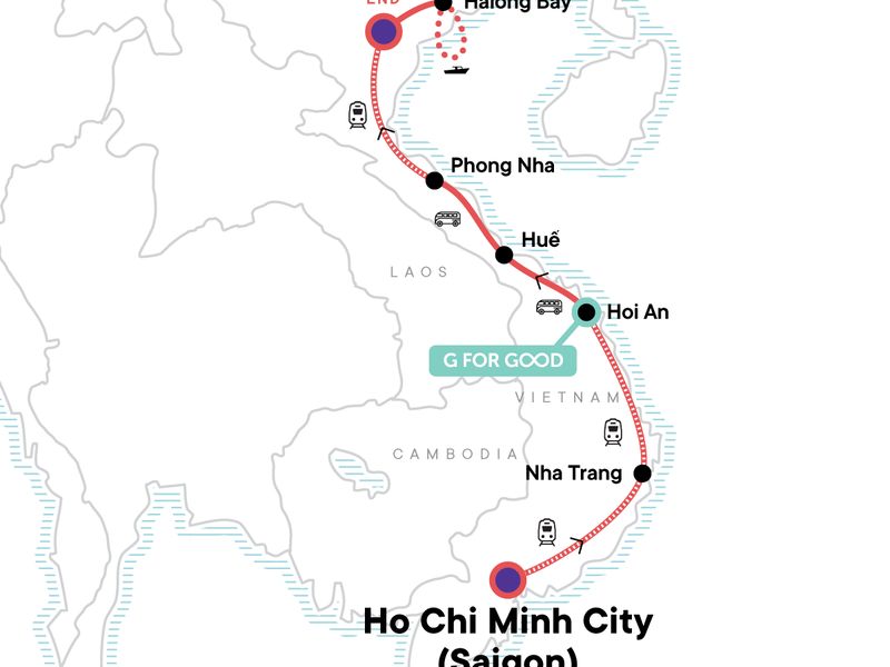 Your Big Night Out Moment: Reminisce Riverside, Hoi An. Street food crawl (Nha Trang). Halong Bay boat trip with lunch. Orientation walks in Ho Chi Minh City, Hoi An, and Hanoi. All transport between destinations and to/from included activities.