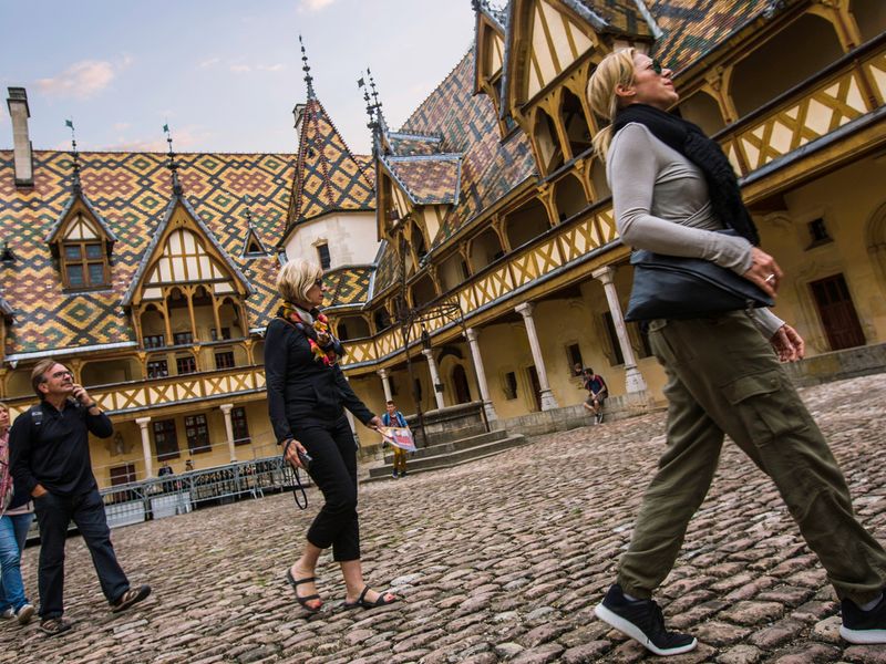 Walk vineyard trails and take in Burgundy’s lush landscapes, Taste regional wines and savour local specialties, Marvel at the colourful roof tiles of the Hospices de Beaune, Discover the history woven through Burgundy’s charming medieval villages