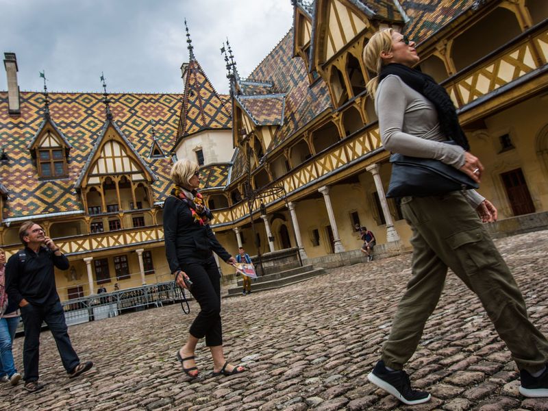 Walk vineyard trails and take in Burgundy’s lush landscapes, Taste regional wines and savour local specialties, Marvel at the colourful roof tiles of the Hospices de Beaune, Discover the history woven through Burgundy’s charming medieval villages