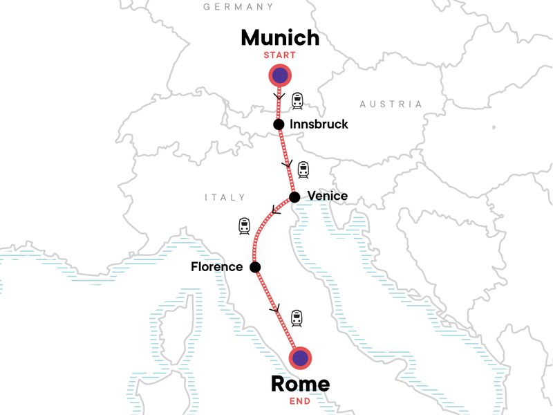 Three magical words everyone loves to hear: Germany to Italy. Sounds wonderful, right? Make the epic trip on this eight-day, hostel-based adventure that’ll have you exploring some of Central and Western Europe’s most iconic cities along the way. You’ll soak up the alpine scenery and vibrant charm of Innsbruck, wander the streets and canals of Venice, and hike around the crystal-clear waters of Lake Misurina. Worked up an appetite? Good, because you’ll make your way from Venice to Florence before wrapping up your trip in Rome with a foodie experience you (and your tastebuds) will never forget. Salute!