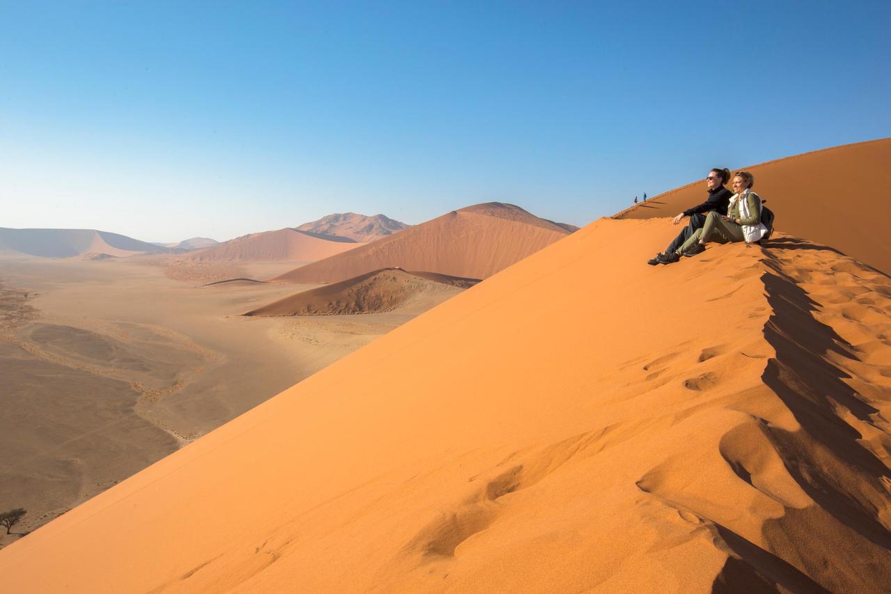 The Namib Desert, which is the oldest desert in the world, famous for its towering red dunes at Sossusvlei.